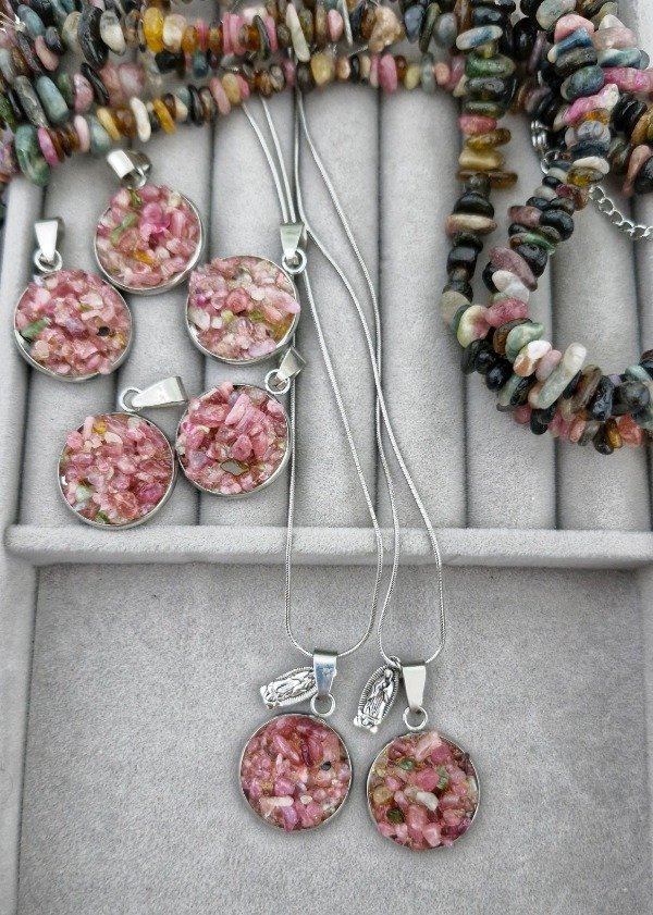 ● DIJE DE ACERO 316L CON FRAGMENTO DE TURMALINA ROSA PREMIUN