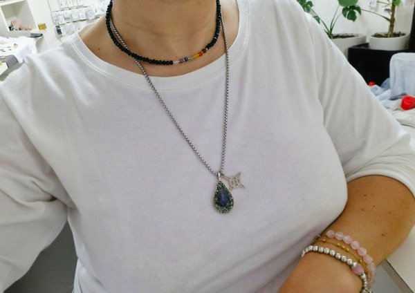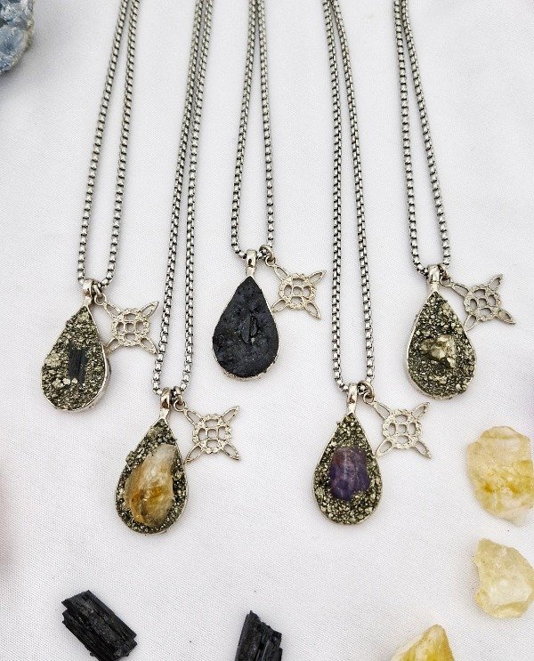 COLLAR GOTA DE PIEDRAS NATURALES Y BASE DE ZAMAK IMPORTADO CON CADENA DE ACERO 316L DE 60 CM