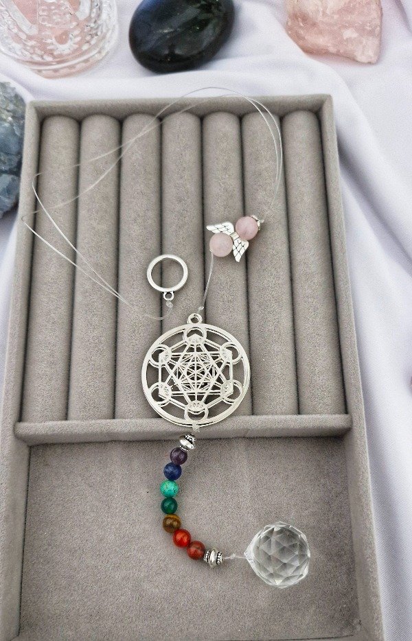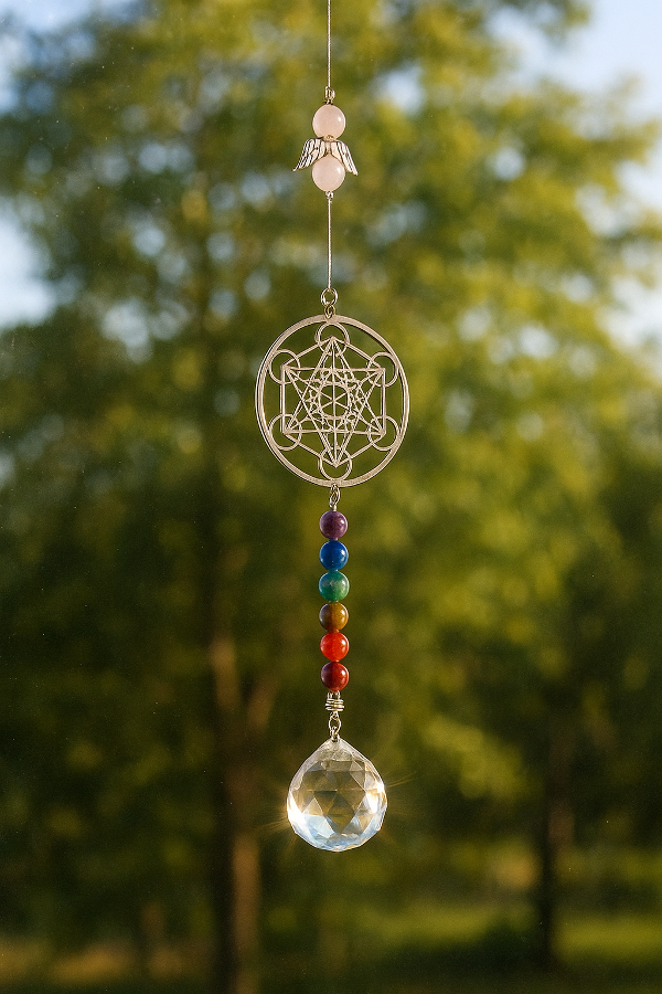💫 Ideal para colocar cerca de una ventana, altar o espacio de meditación, este colgante transforma la energía del lugar y del alma, recordando que todo lo sagrado habita en el equilibrio entre la luz, el amor y la protección.