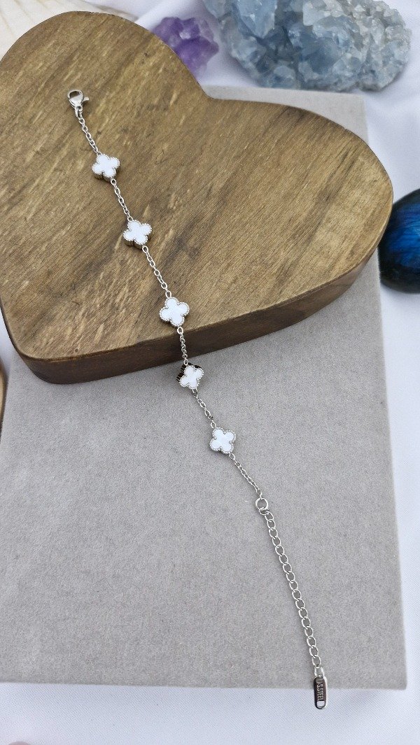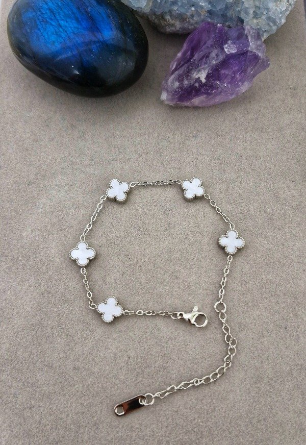 PULSERA DE ACERO 316L TRÉBOL COLOR NÁCAR